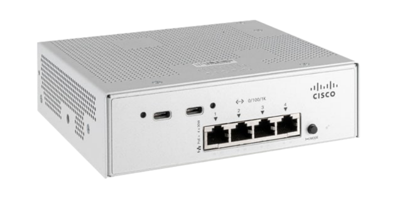 Cisco Catalyst Micro Switch CMICR-4PT provides full-featured Gigabit Ethernet and PoE+ in ultra-small 4-port form factors that can be mounted on the desktop. Offering Enterprise-class security, management and reliability and optimised for distributed access networks. The smart choice for delivering copper or fiber connectivity right to the end device.
